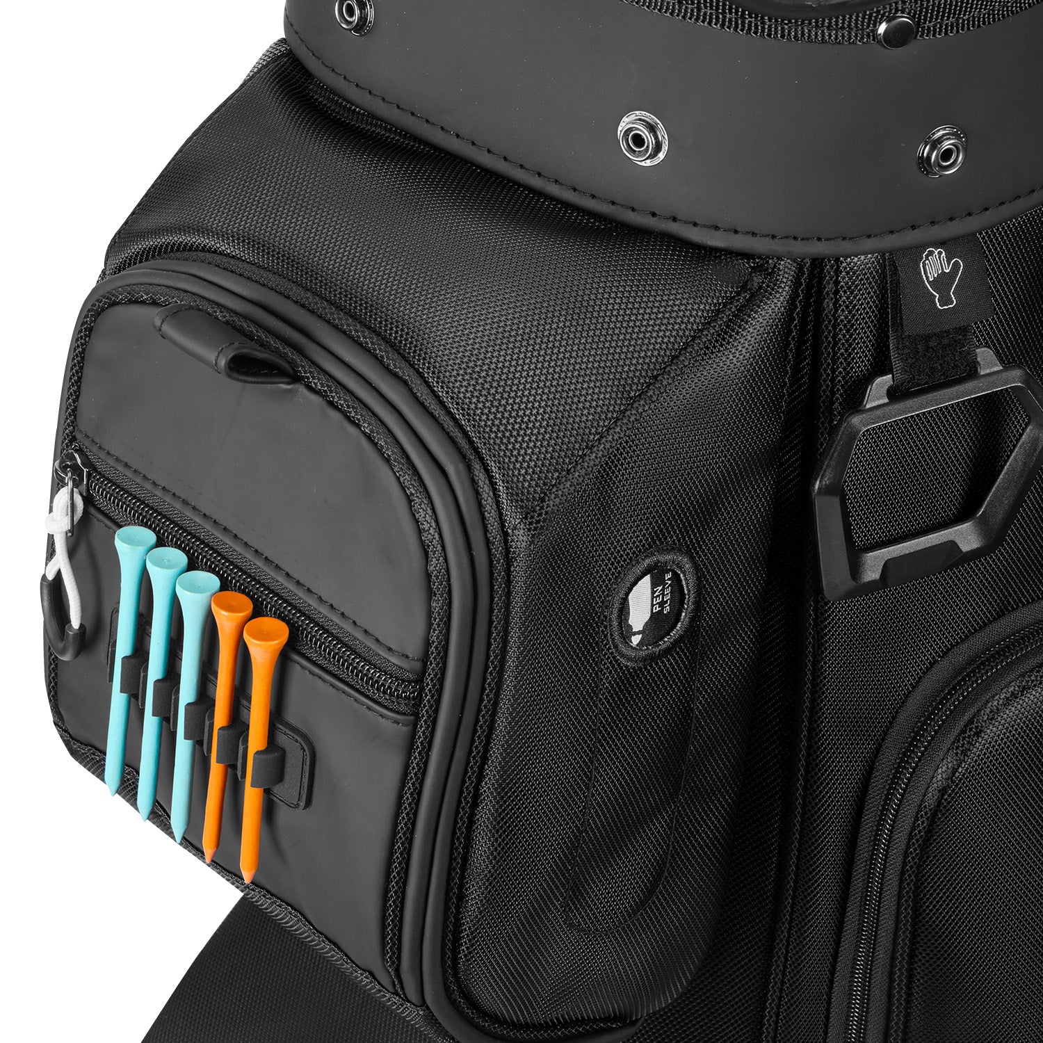Crafted from premium water-resistant and durable leather, these pockets offer both style and luxury. The spacious pockets easily accommodate clothing, shoes, gloves, and other essentials. Includes a dedicated rain cover for full protection, ensuring your clubs and equipment stay dry in wet conditions