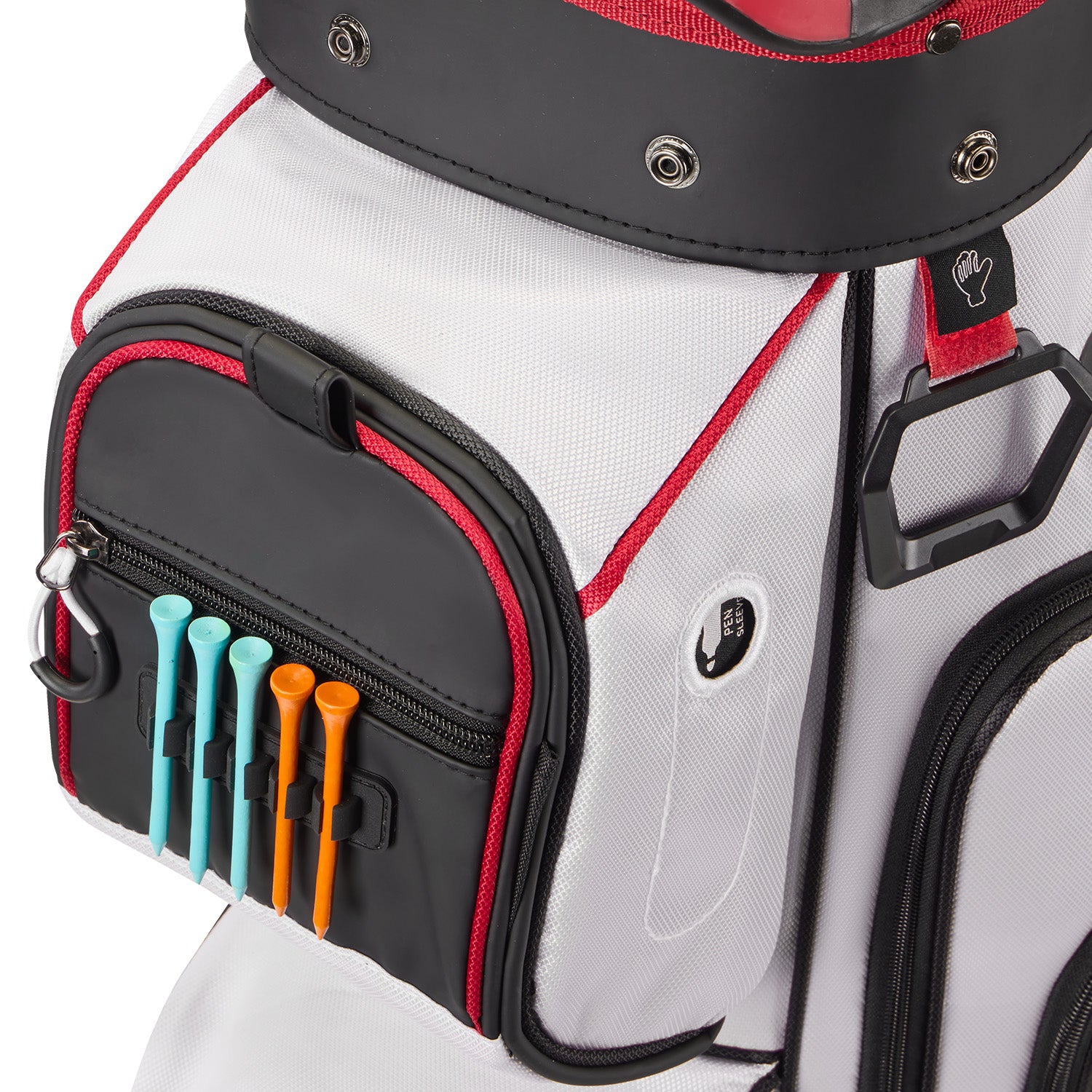 This golf cart bag features 14 individual compartments, including a dedicated putter slot, ensuring organized club storage, comprehensive protection, and preventing impact damage