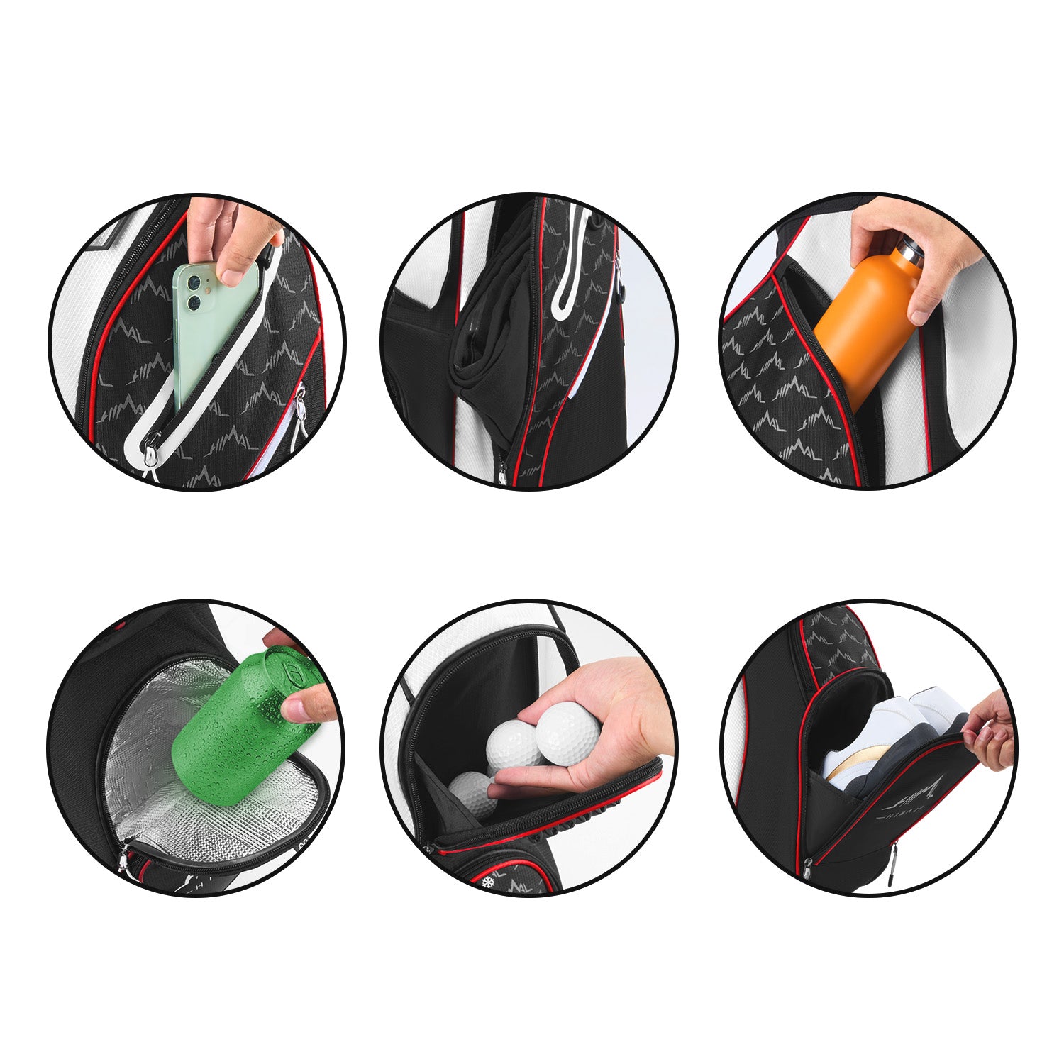 Designed with meticulous craftsmanship, features a 14-way top divider system that provides dedicated slots for each club in your set. Provide outstanding protection for your golf equipment, effectively avoiding damage and wear. This golf cart bag is an essential accessory for any golfer looking to protect their clubs