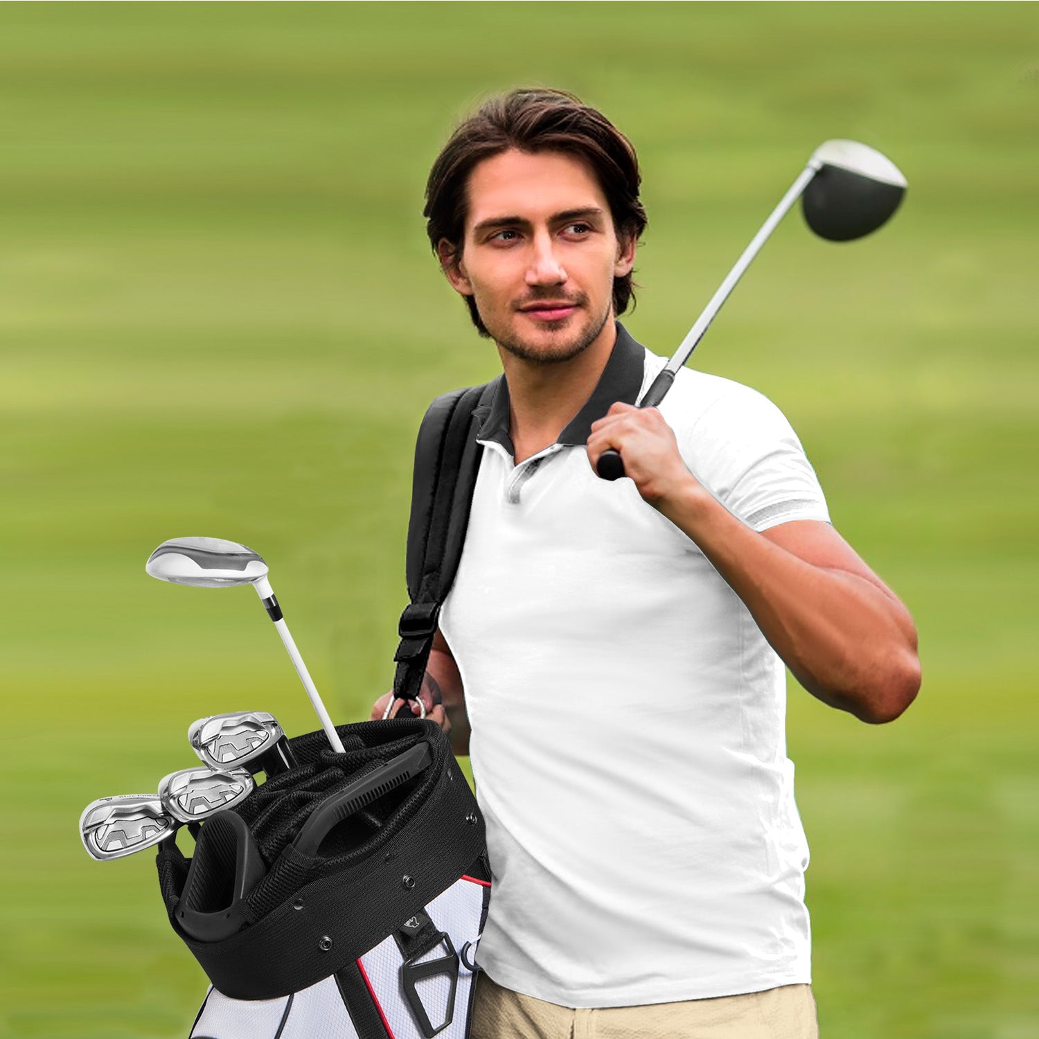 The Golf Bag features adjustable shoulder straps and multiple handles designed for ergonomic comfort, allowing you to carry it with ease while reducing strain on your shoulders and hands. Ideal for those who use a golf push cart or a golf bag cart