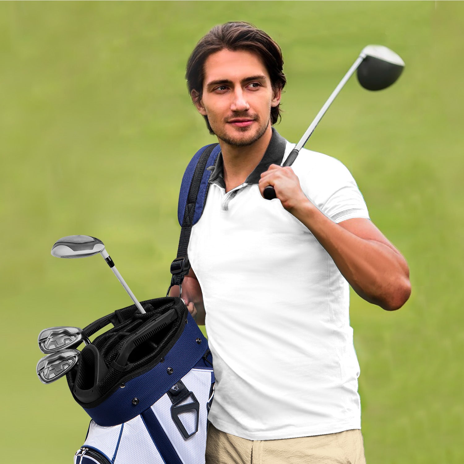 The Golf Bag features adjustable shoulder straps and multiple handles designed for ergonomic comfort, allowing you to carry it with ease while reducing strain on your shoulders and hands. Ideal for those who use a golf push cart or a golf bag cart