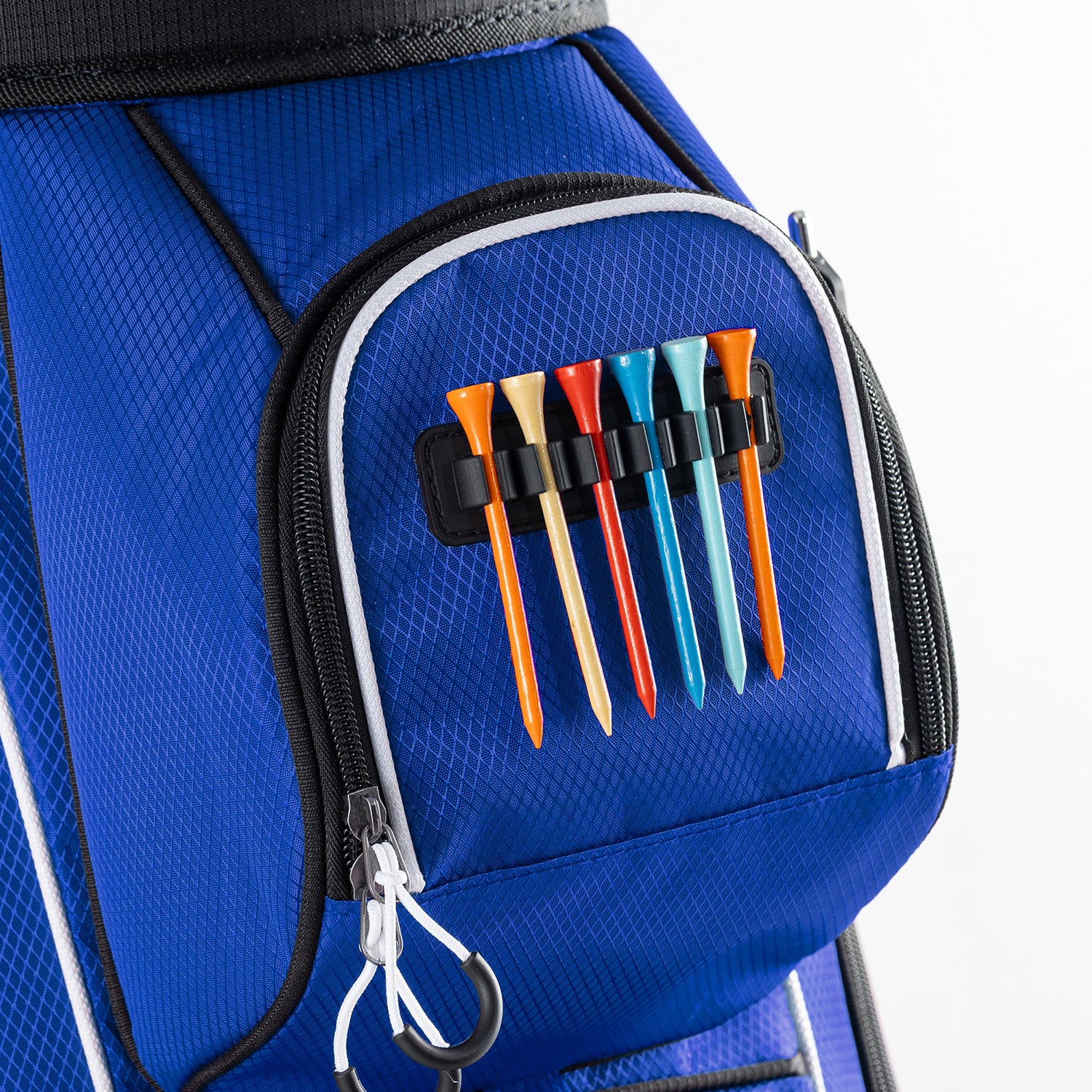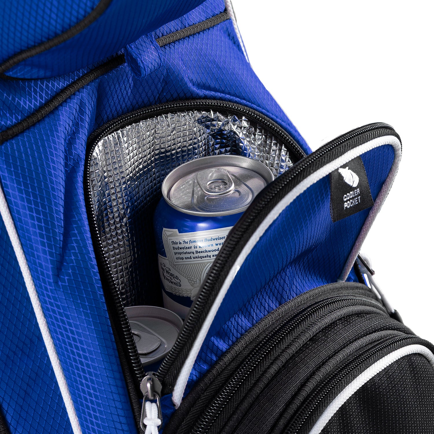 With multiple pockets, including a spacious apparel pocket, cooler pocket, valuables pocket, and more, this golf cart bag offers ample storage space for your golf essentials, snacks, beverages, and personal items.