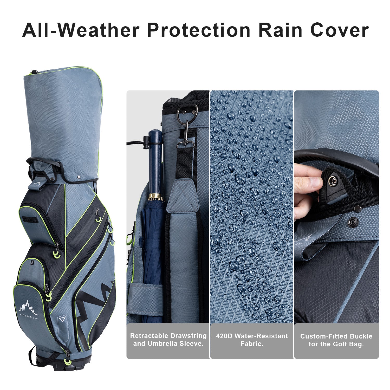 The UNIHIMAL golf cart bag excels in organization with 14 distinct compartments, ensuring each club is neatly stored and readily accessible without the risk of accidental damage