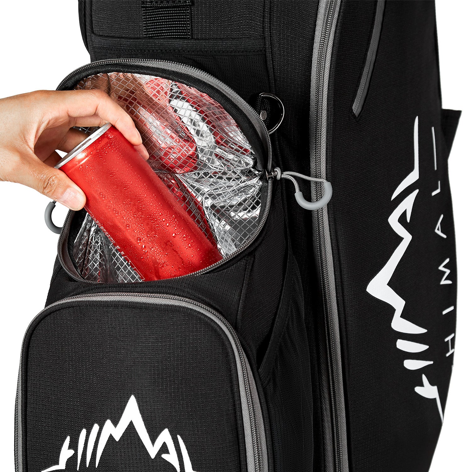 Multiple pockets including cooler pocket and shoe compartment on the golf bag provide ample storage for golf balls, accessories, rain gear, food, and more. Plus rain hood cover and towel ring with velcro glove attachment