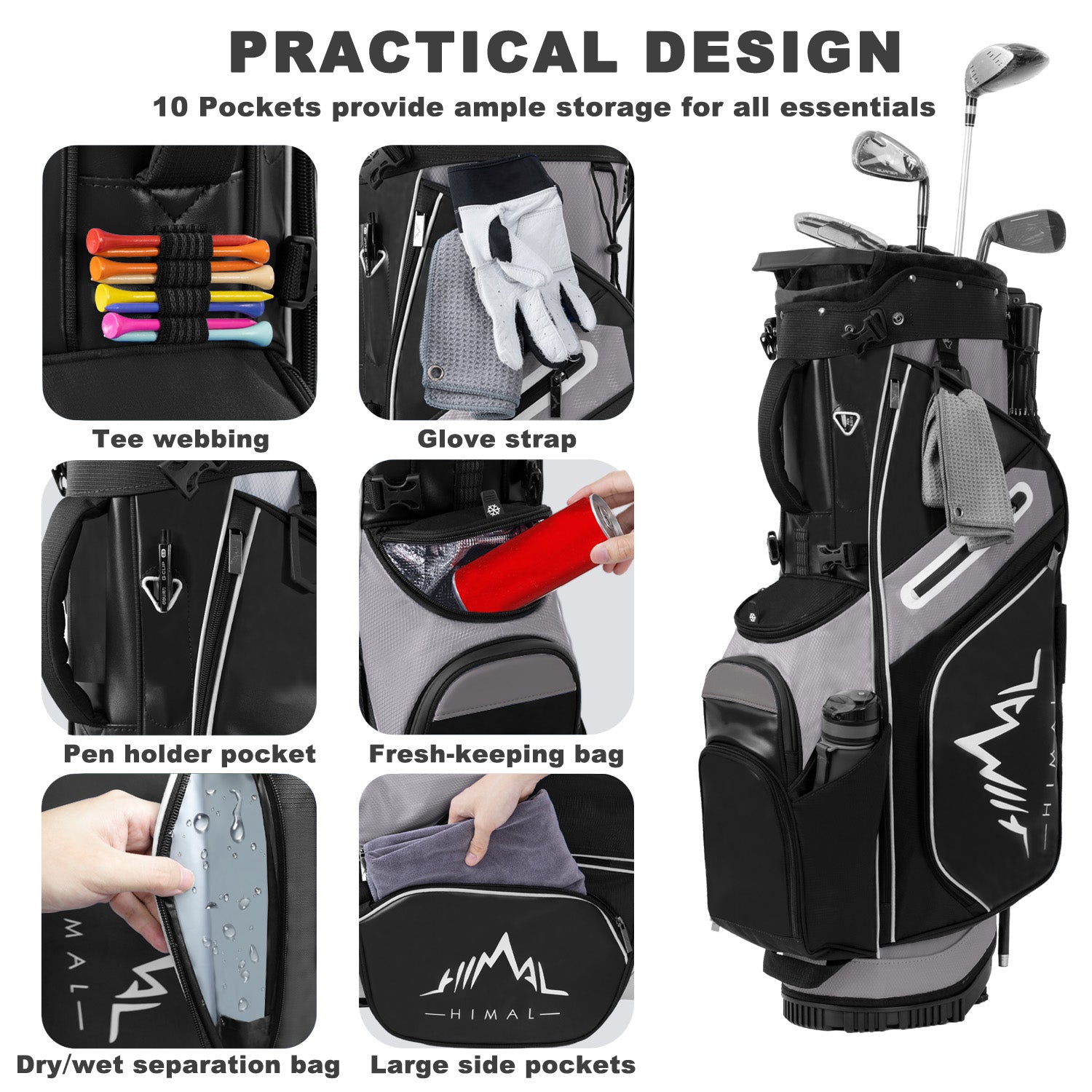 With 10 strategically placed pockets, including a water-protective valuables pocket, an insulated cooler bag, and front magnetic pocket for easy reach to golf balls, this golf club bag offers ample space to keep your gear organized and at your fingertips
