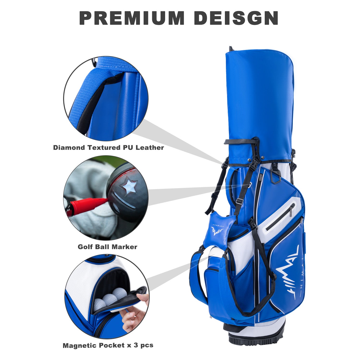 14-Way PU Leather Golf Stand Bag-Royal Blue White