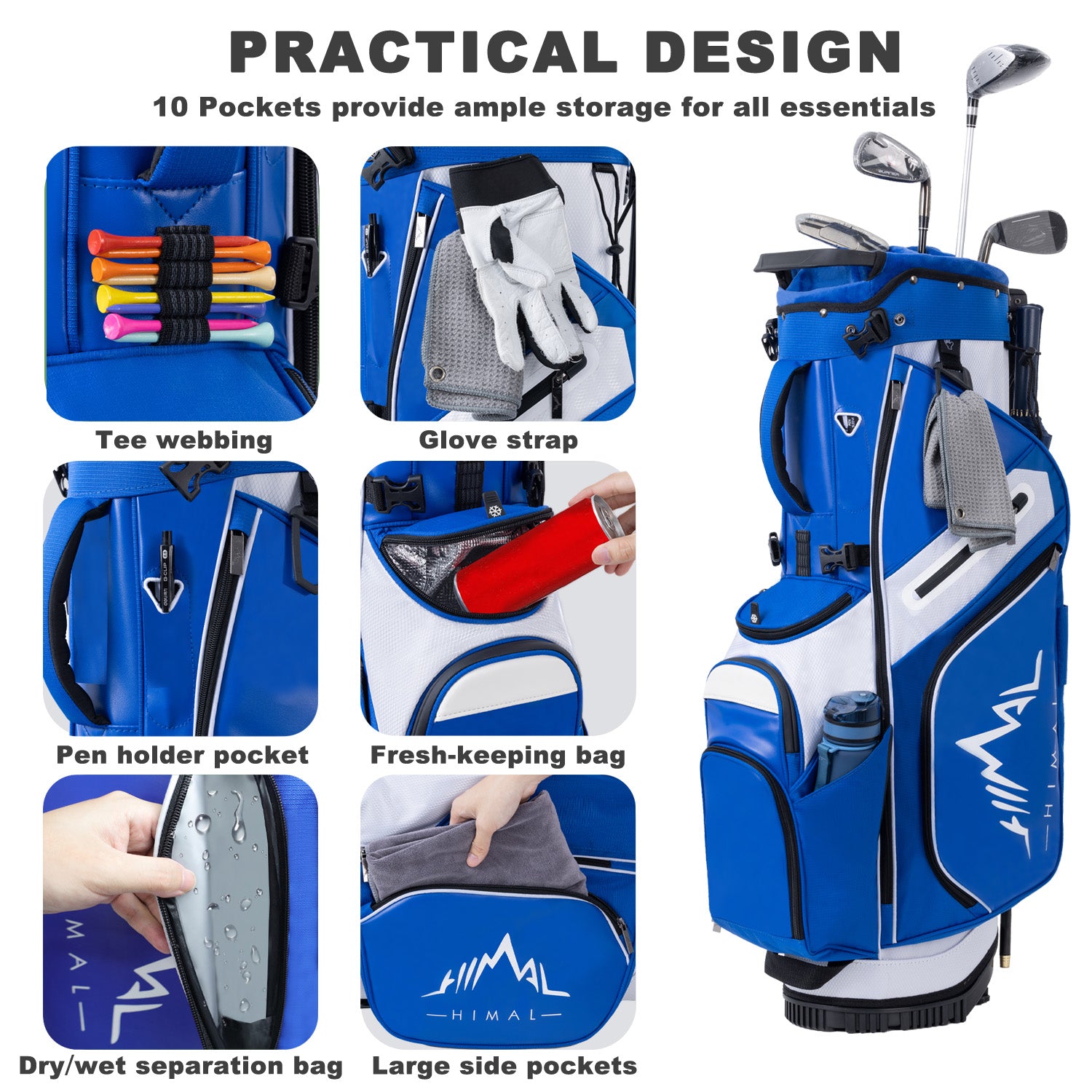 With 10 strategically placed pockets, including a water-protective valuables pocket, an insulated cooler bag, and front magnetic pocket for easy reach to golf balls, this golf club bag offers ample space to keep your gear organized and at your fingertips