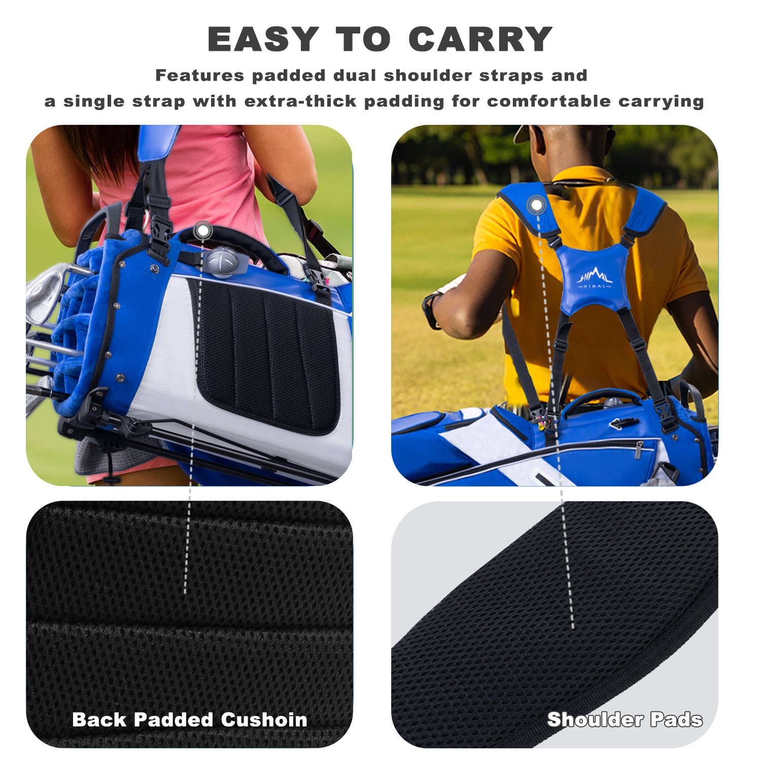 The plush head divider, this golf stand bag ensures gentle care for your golf clubs, 14-way dividers offer individual storage space for each club reduces collisions and damage between clubs, and minimizing wear and tear during transport, keeping your clubs in prime condition