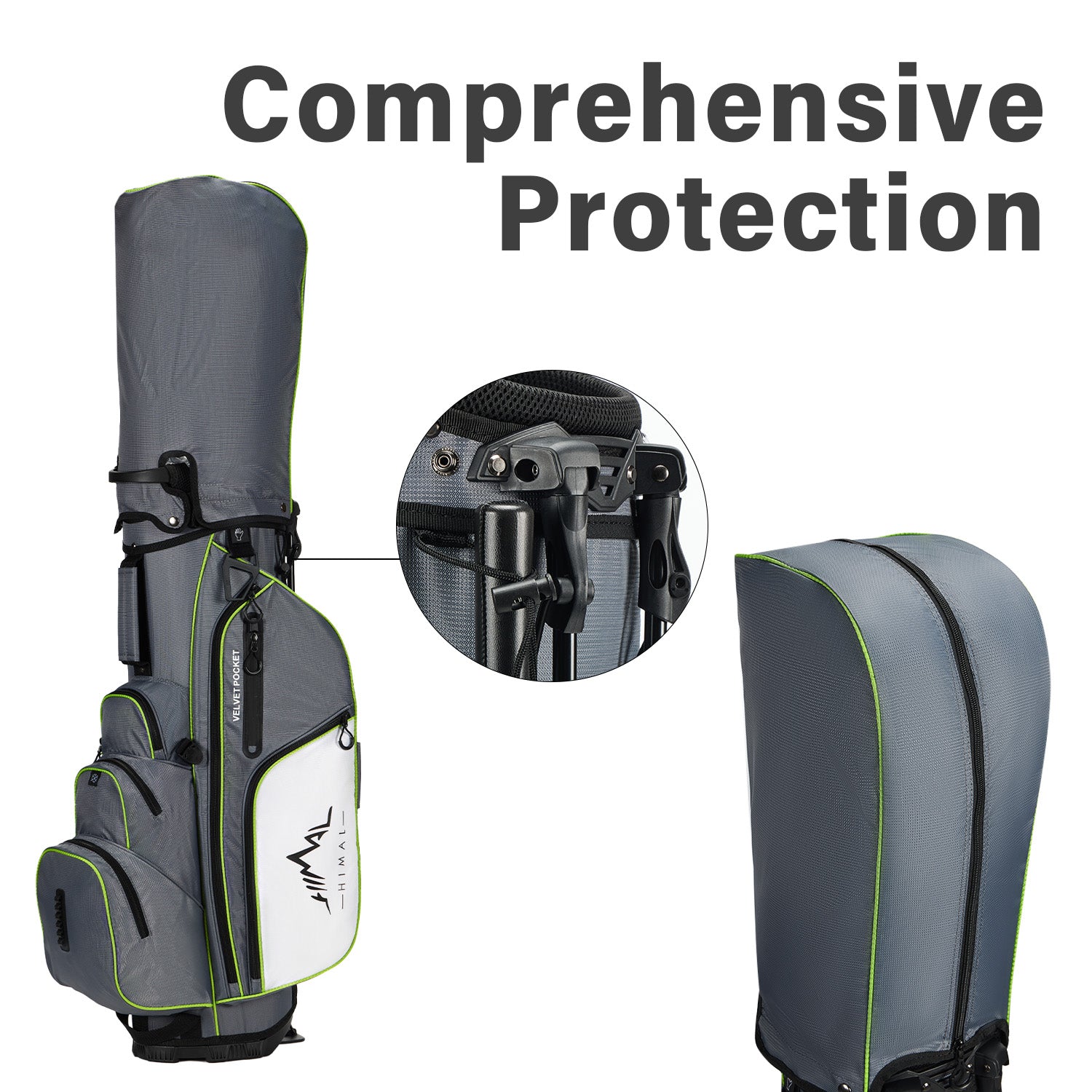 Crafted from durable polyester with water-safe fabric and equipped with rain cover, this golf bag shields gear from rain and dust