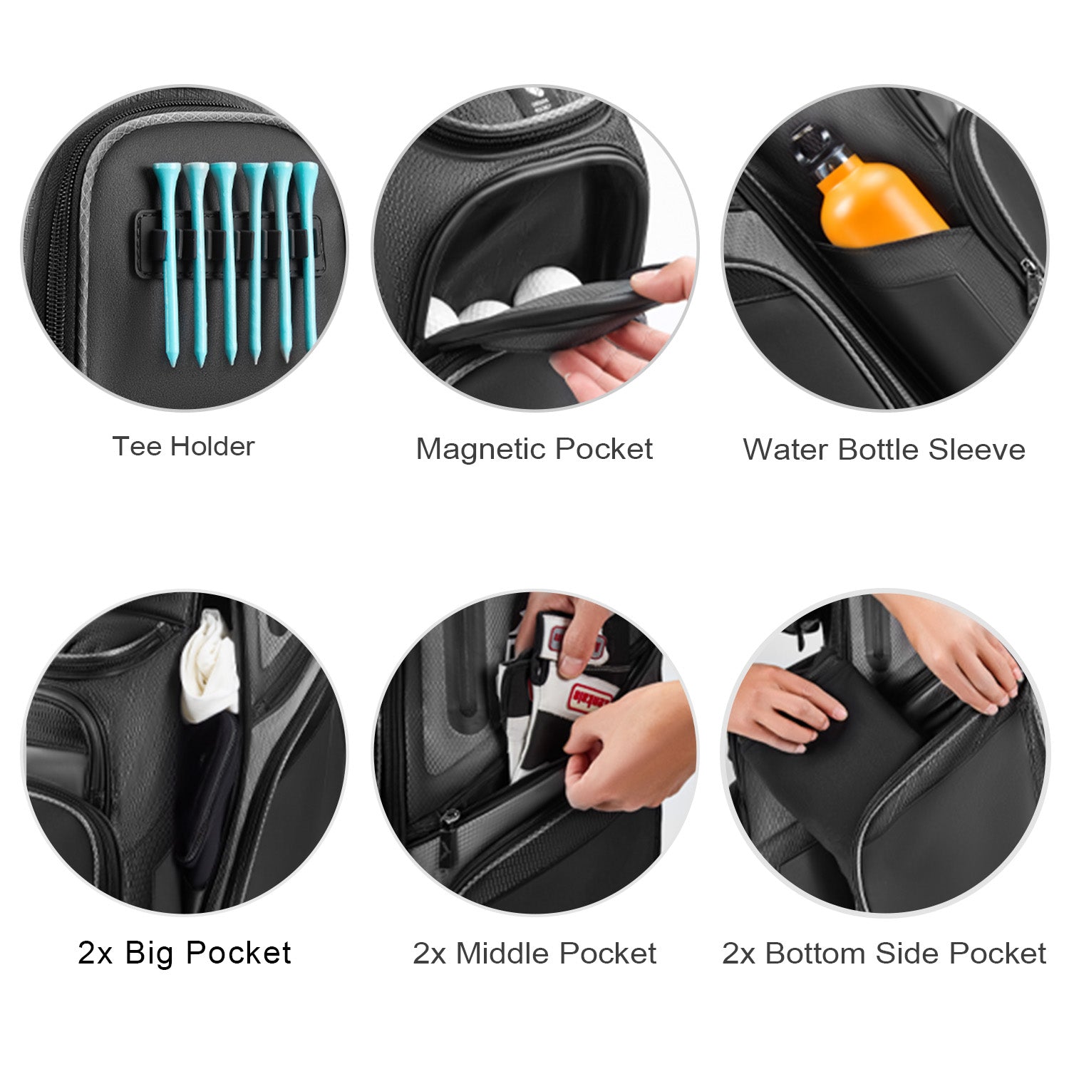 This golf cart bag features a full-length 15-way divider design, including a dedicated putter slot. It reduces friction, prevents scratches and damage to your clubs, and keeps them organized and protected. Perfect for golfers of all levels