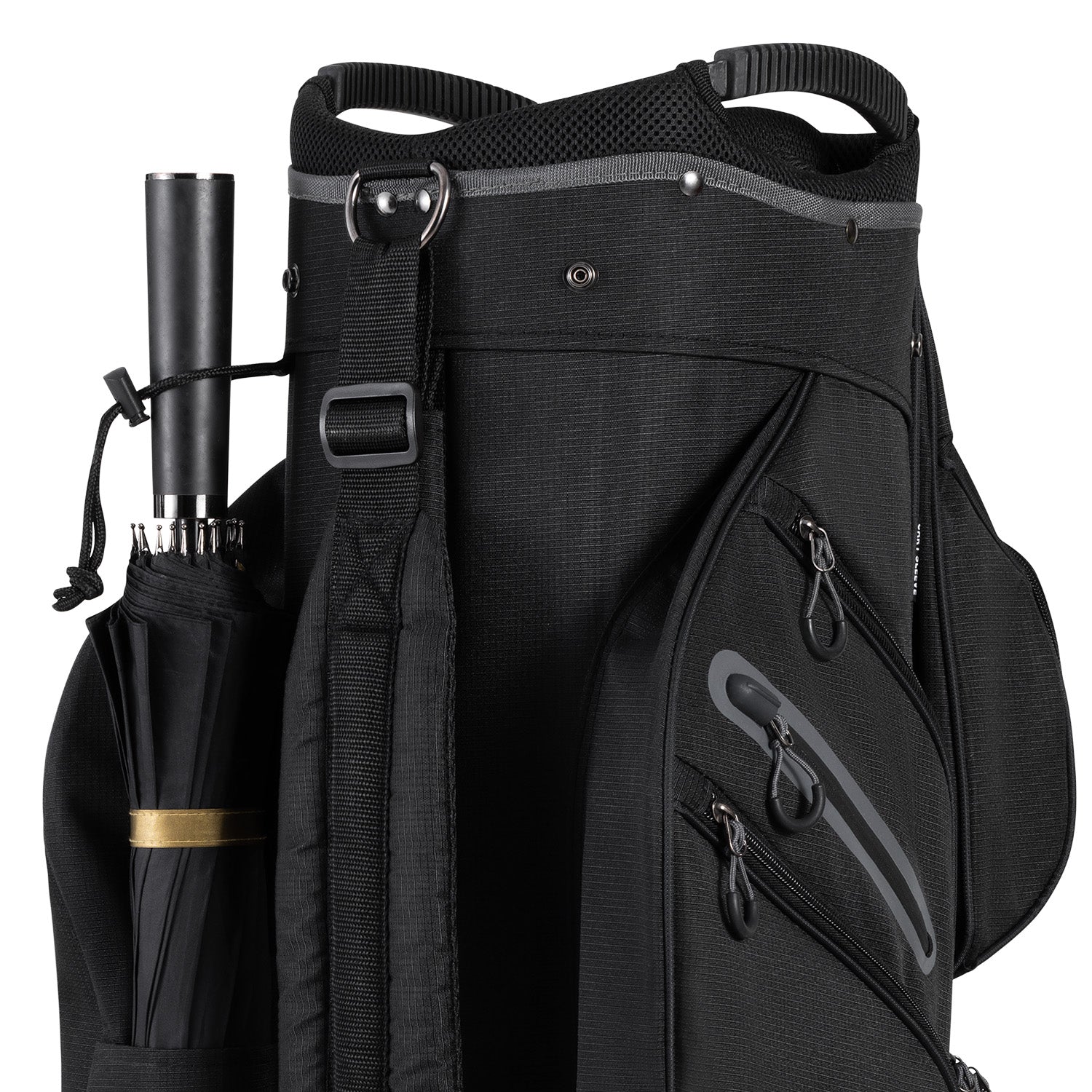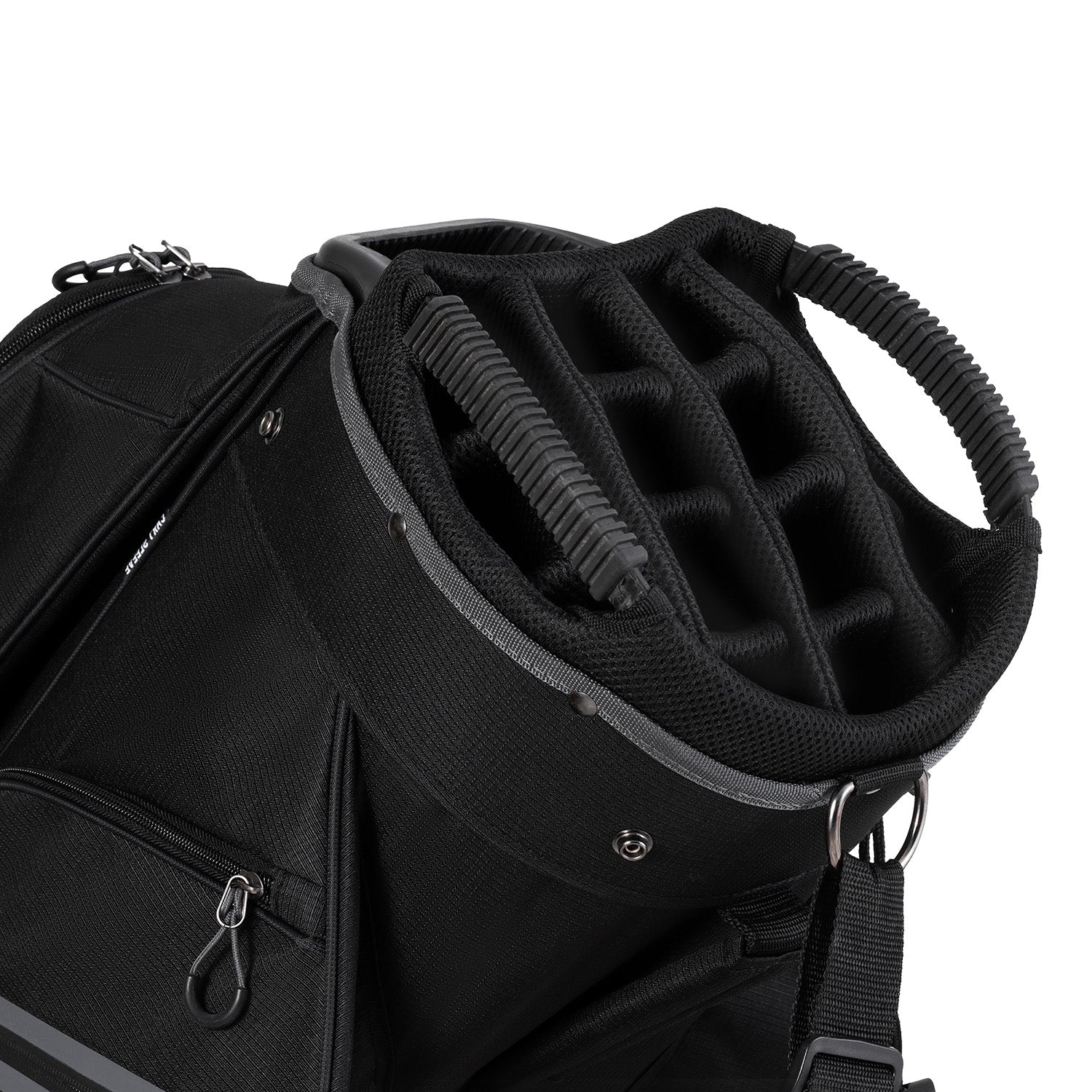 Besides the 15 compartments, extra storage pockets provide additional space, convenient for carrying golf apparel, shoes, gloves, and other essentials