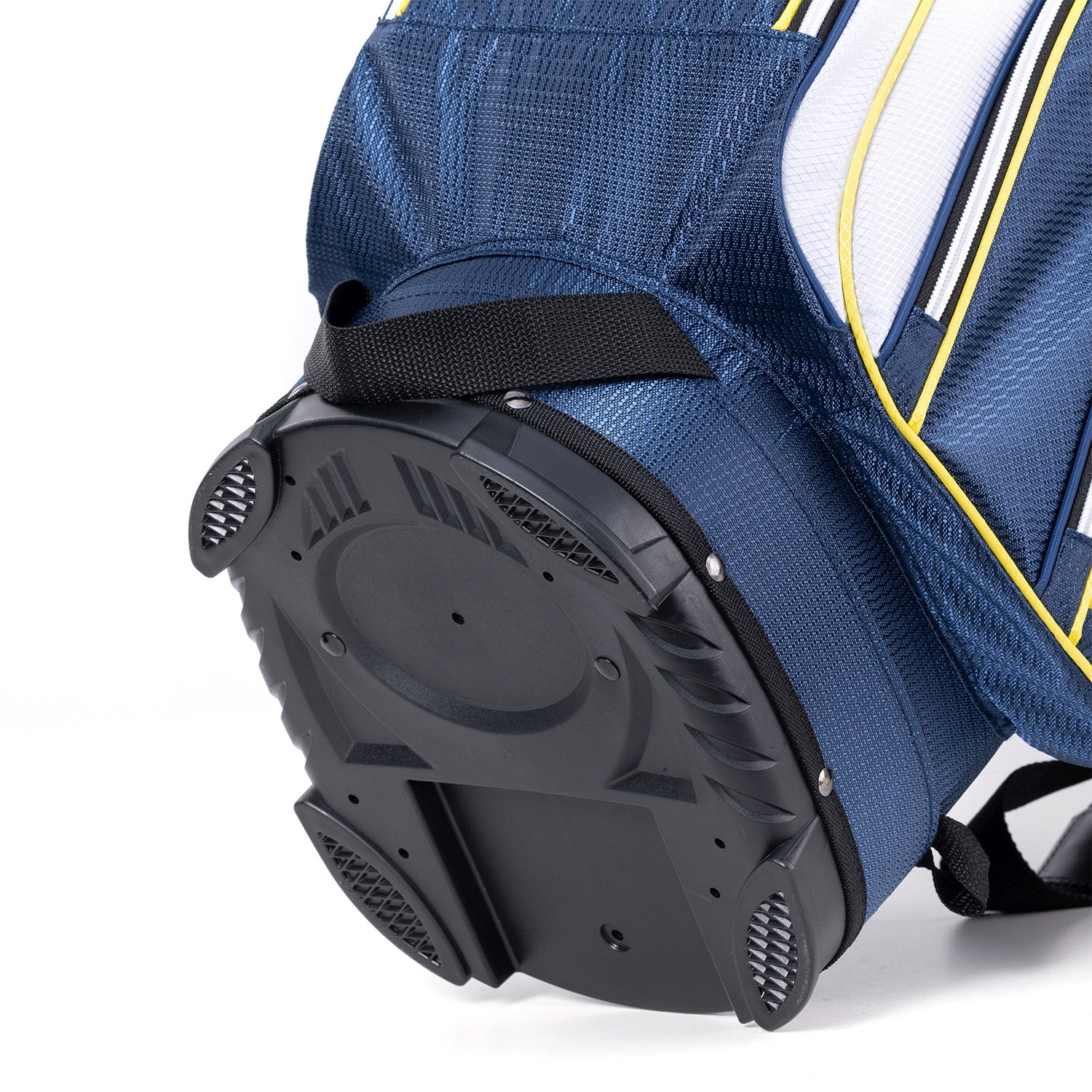 Designed with a robust plastic base, this golf cart bag ensures stability and durability on any terrain. It stands securely on the grass, making it a dependable companion for all your golf outings