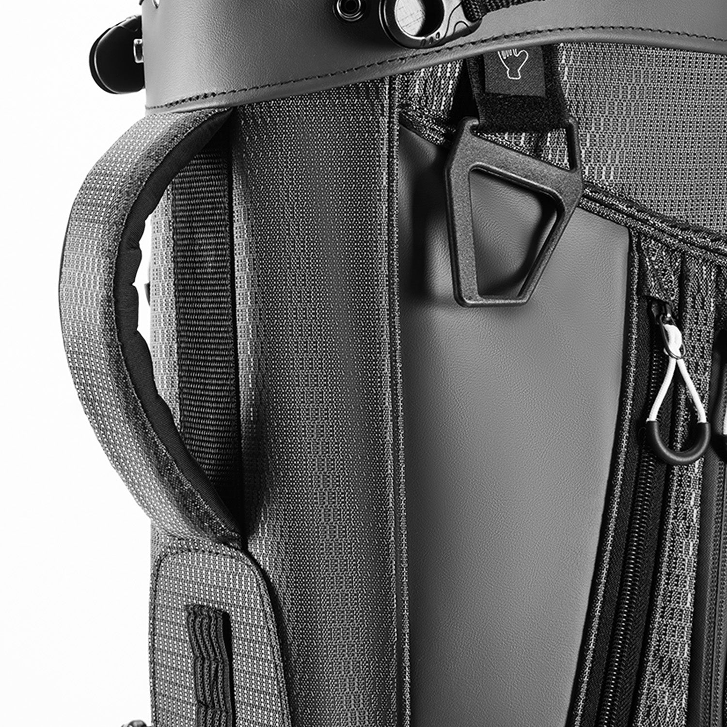 Easily release the stand legs and the stable base protects your clubs by standing firmly on ground. Features a convenient grab-and-go speed handle and retractable legs that automatically fold in when picking up the bag