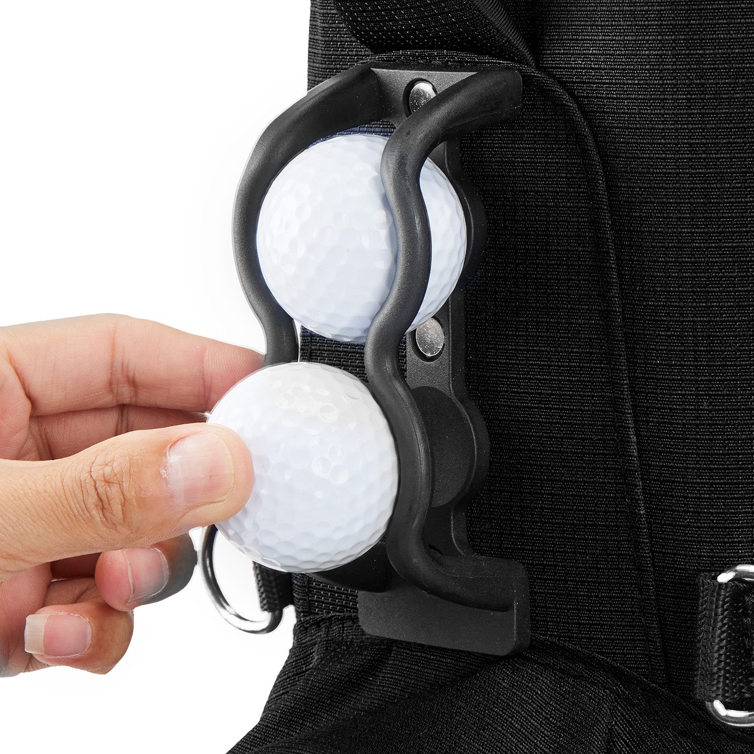 Designed with a golf ball holder that hold 2 balls for easy access. Also, it is equipped with an umbrella holder, rain hood and a towel ring with Velcro glove attachment to ensure you're prepared for any weather conditions