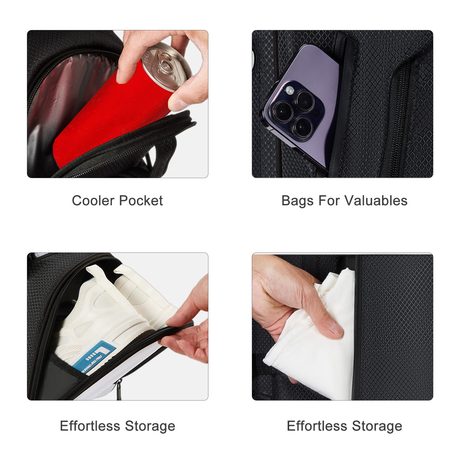 This golf bag for men and women features 6 thoughtfully designed pockets, including spacious side pockets, a secure valuables pocket, and an insulated cooler pocket, offering ample room for all your golf gear and essentials