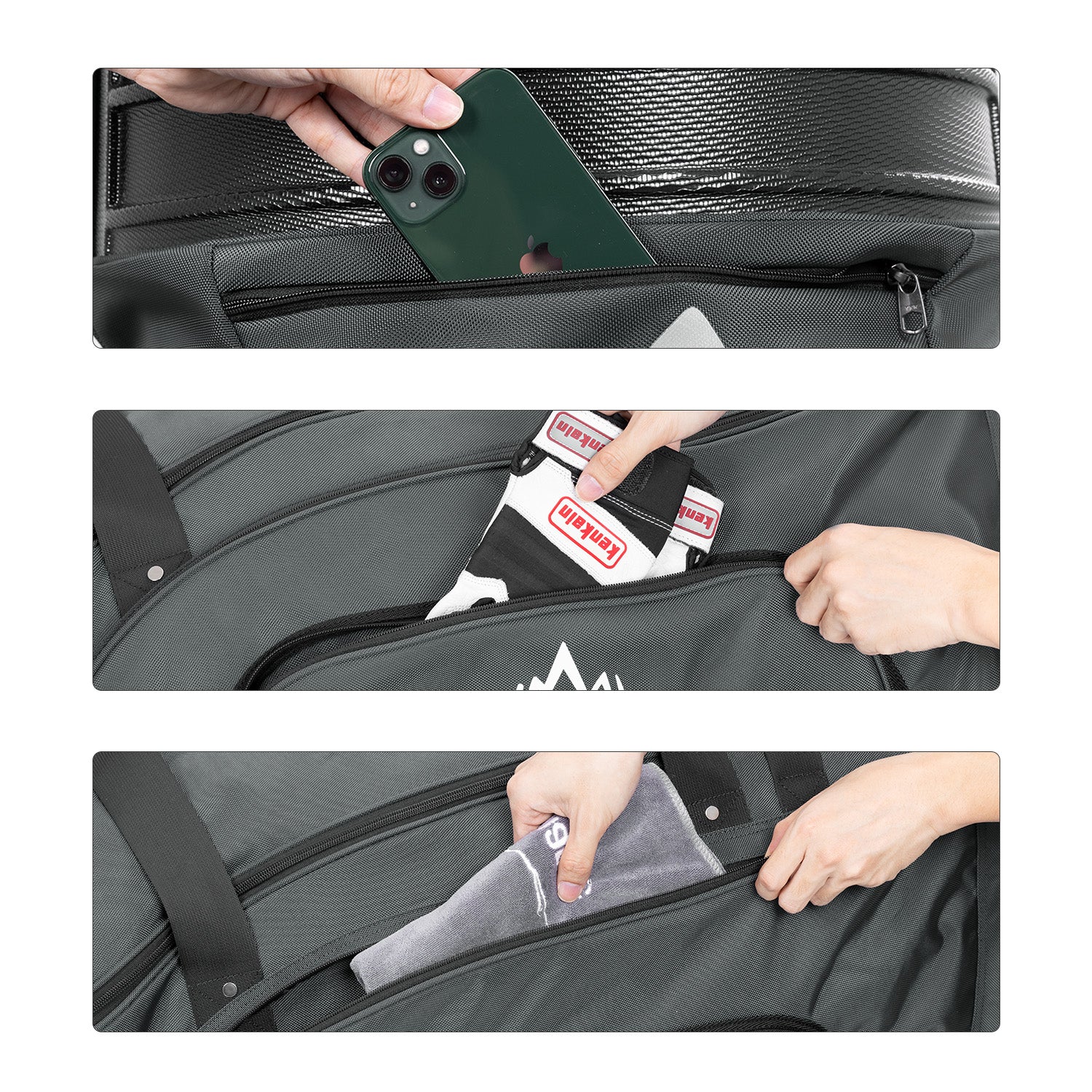 This golf travel bag features 5 zippered compartments, including a small front pocket for accessories. You can easily store and organize golf clubs, shoes, gloves, and other essential items