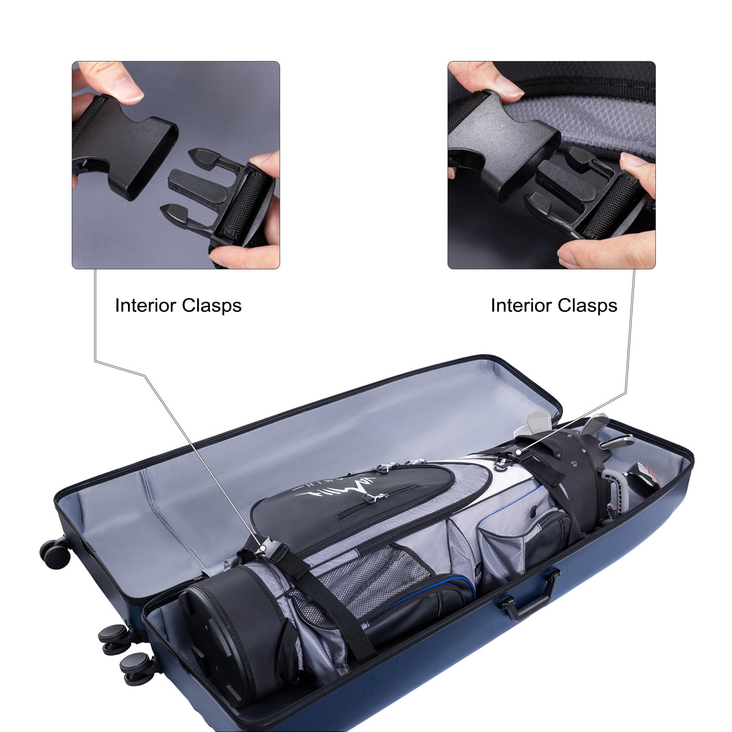 2 interior fixing buckle straps keep your golf bag securely in place to prevent it from moving during travel.