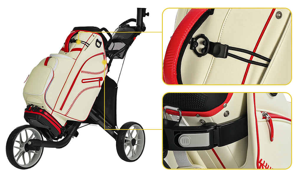 Equipped with a detachable pocket cover for easy customization.The spacious storage compartment fits bulky items like extra clothes and golf shoes, keeping your gear organized and accessible for a hassle-free round.
