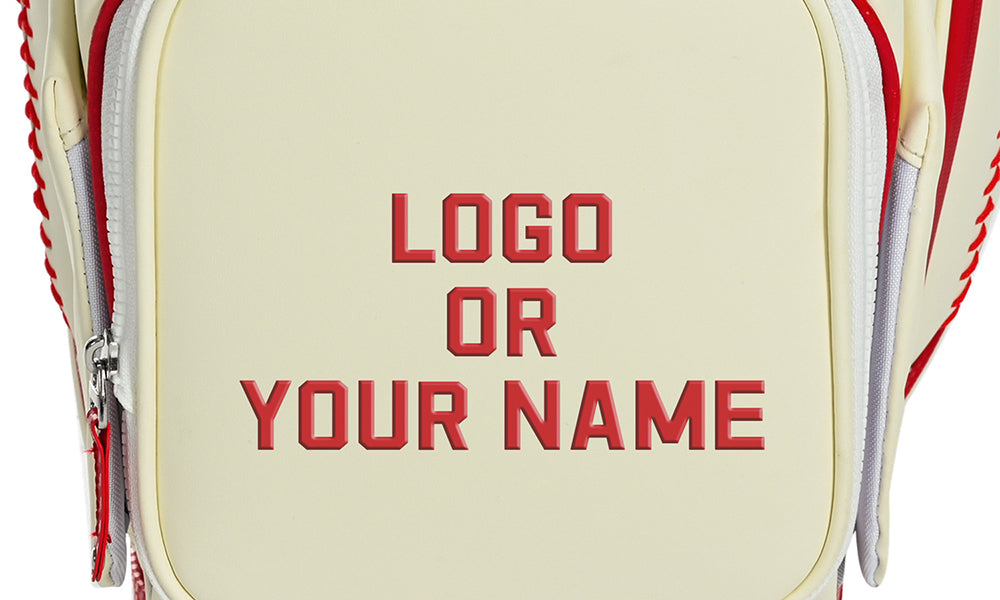 uniHimal 2025 Luxury Synthetic Leather Golf Cart Bag Padded 14 Way Full Length Dividers with Hand-Sewn Baseball Stitching-Red White
